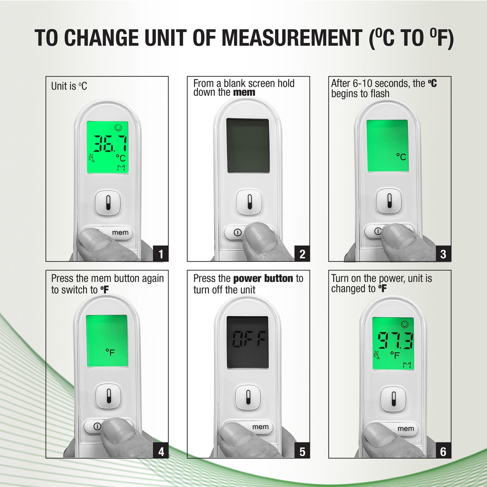 Just one quick click and an instant reading! Our blue forehead light indicates exactly where you are reading your temperature from and is calibrared for accuracy to less than 0.1 degrees!